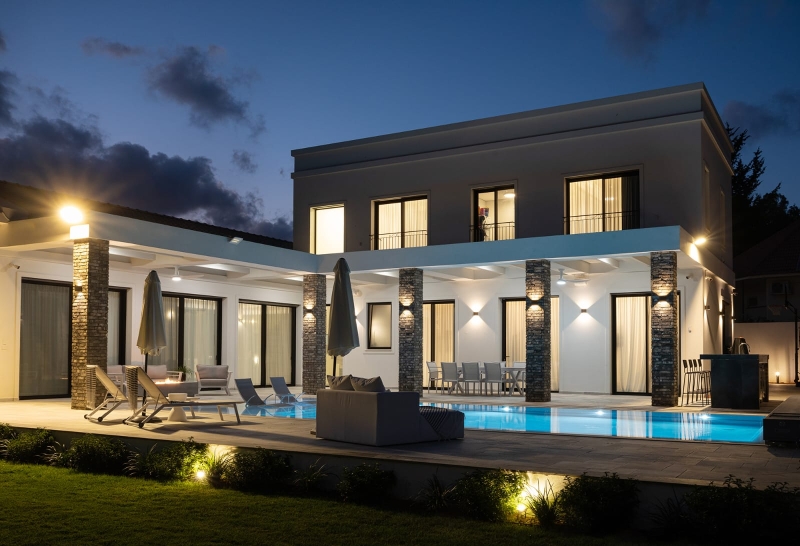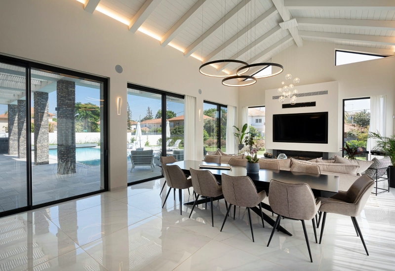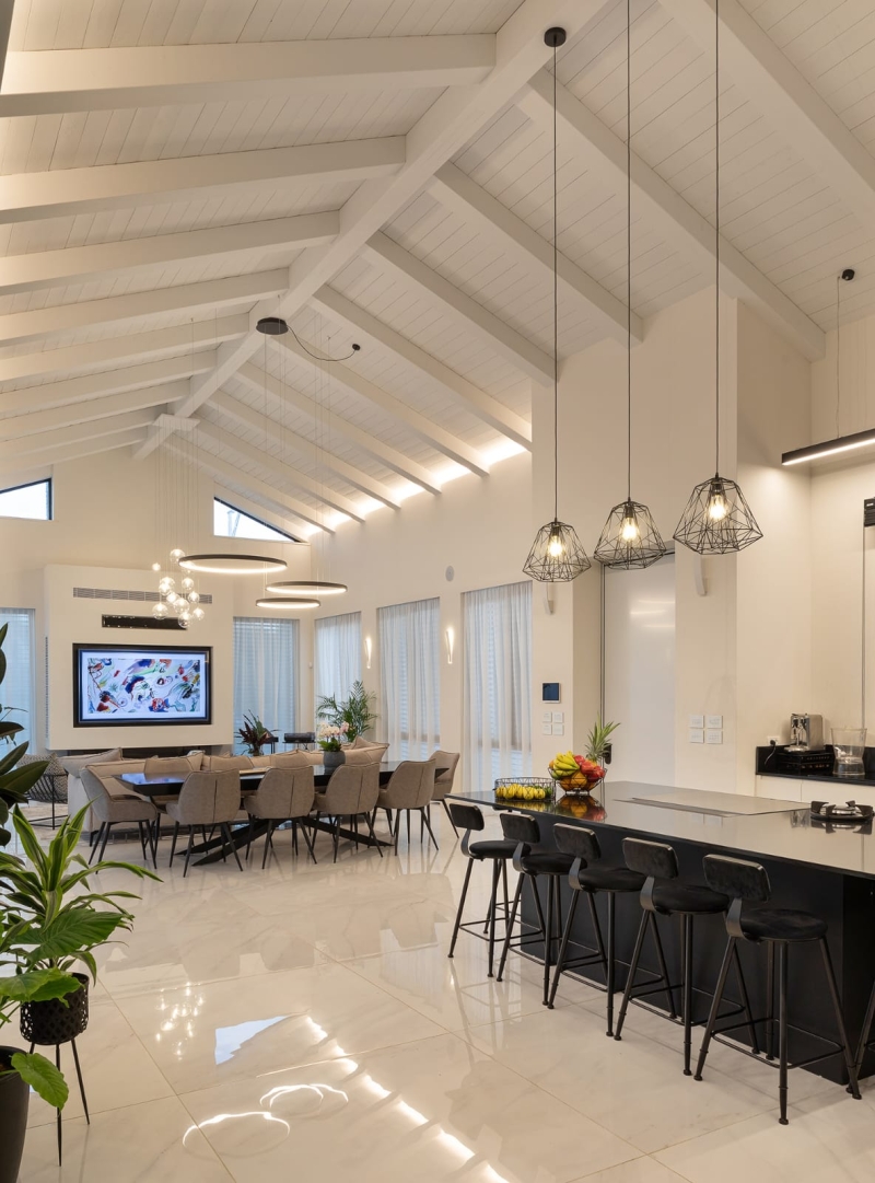 In the Kadima - Zoran Regional Council in Sharon, in the high-quality village neighborhood, a luxurious and exceptional villa is offered for sale, on a large, isolated, and special plot of 1180 square meters, in a tastefully decorated built area of 550 meters, 4 bedrooms, full suites, smart home, underfloor heating, VRF air conditioning system, large swimming pool, jacuzzi, and all the luxuries, an amazing property!