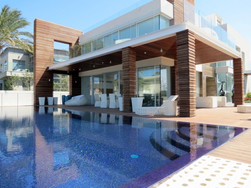 A modern beach home for sale in Herzliya Pituach, located perfectly in front of the sea and with easy access to the beach. This luxurious home has 6 bedrooms en-suite, private swimming pool, state-of-the-art home-cinema room, elevator, floor heating and smart-house electricity system.