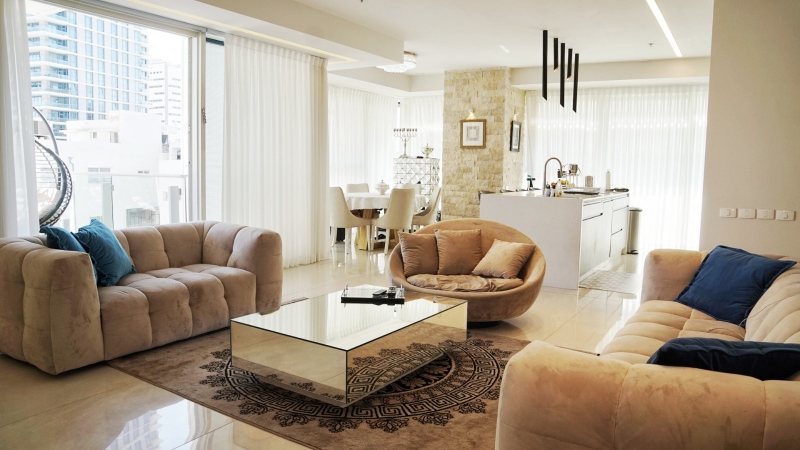Beautiful luxury apartment with sea view for rent in Tel Aviv's David Promenade Towers.