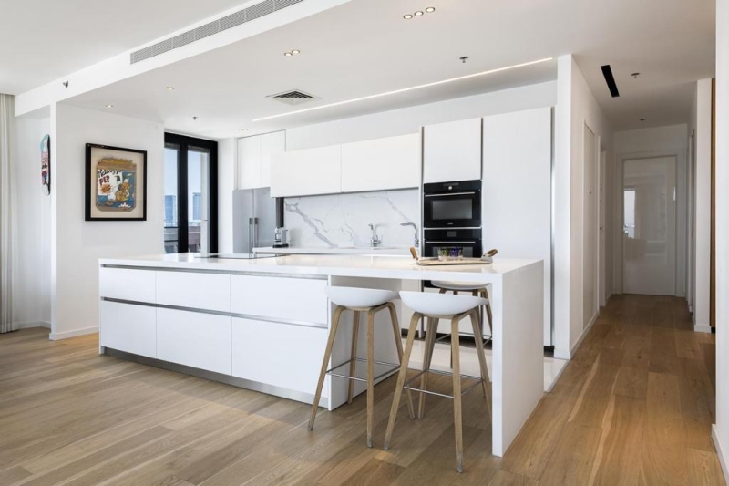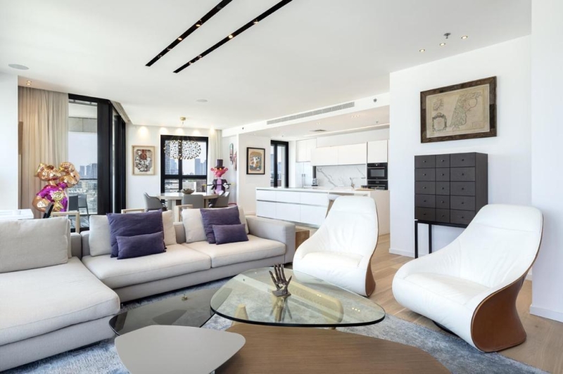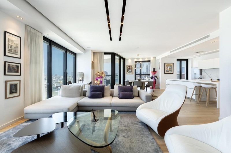 Luxurious apartment for sale in the heart of Tel Aviv, exceptionally spacious with a total area of 196 sqm and 24 sqm of open-view balconies. The apartment offers a stylish living space with a master suite, two luxurious suites, and two spacious walk-in closets. Included are two private parking spaces and a large storage unit.