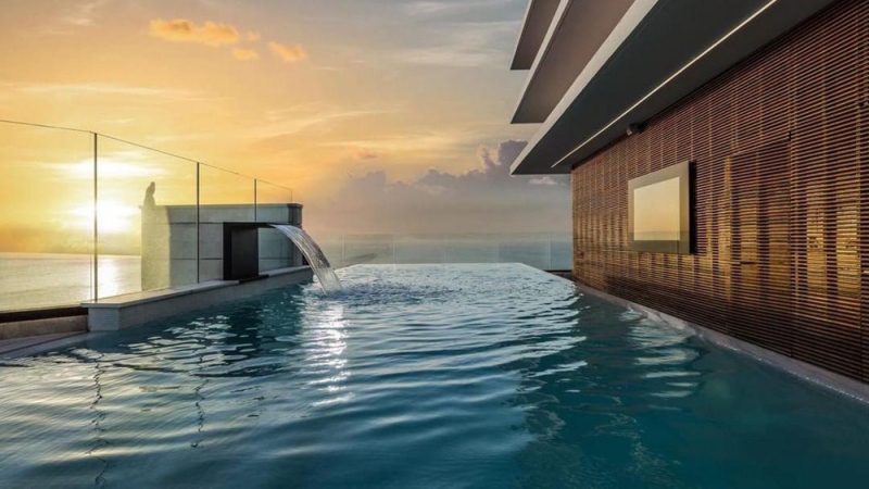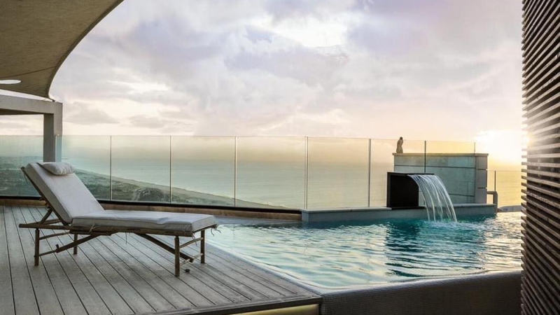 For sale in Rishon LeZion, a luxurious apartment spanning the 21st and 22nd floors, in a highly desirable central location. The property covers 190 sqm on the 21st floor, featuring a spacious 70 sqm balcony with unobstructed sea views. The 22nd floor boasts a generous 190 sqm rooftop, which includes a heated infinity pool measuring 12 meters by 4.5 meters, a fully equipped kitchen, and facilities including a bathroom and shower. The rooftop is also equipped with two televisions and a unique elevator that provides direct access.