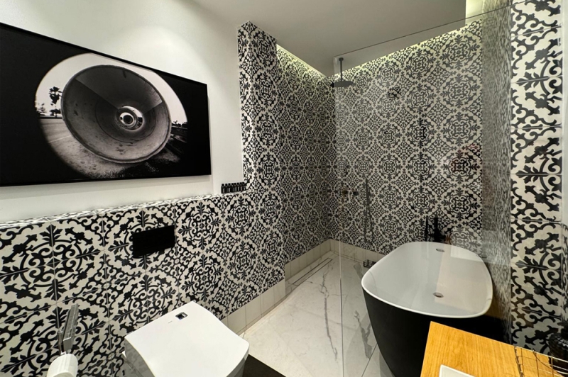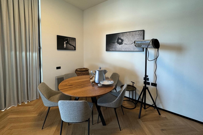 Description in English: For rent, a luxurious apartment in the Renoma Hotel on Hayarkon Street. The apartment spans 150 sqm with an additional 20 sqm balcony. Features high ceilings of 3.7 meters and private parking for two cars. Equipped with underfloor heating including in the bathrooms and shower, and contains five comfortable rooms. Rental price: 45,000 ILS per month.