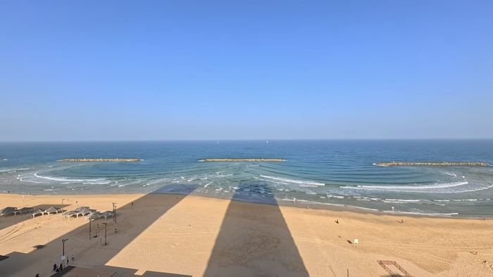 Appartement de luxe en bord de mer dans la résidence David Promenade, Tel Aviv. Orientation sud-ouest, 208 m² intérieur + 72 m² de balcons, 4 chambres, vue imprenable sur la mer jusqu'à Jaffa. Services de conciergerie 24/7, salle de sport et piscine extérieure. Inclut 2 places de parking. Prix flexible pour un locataire premium.