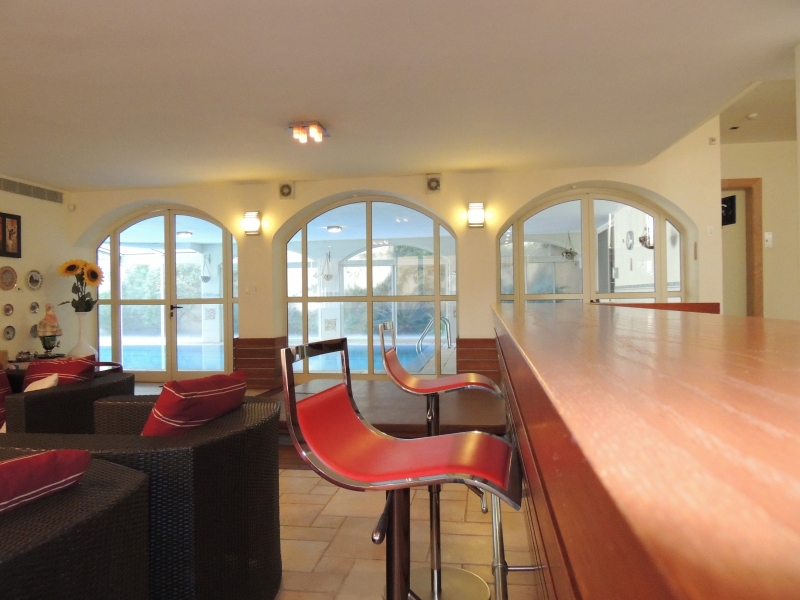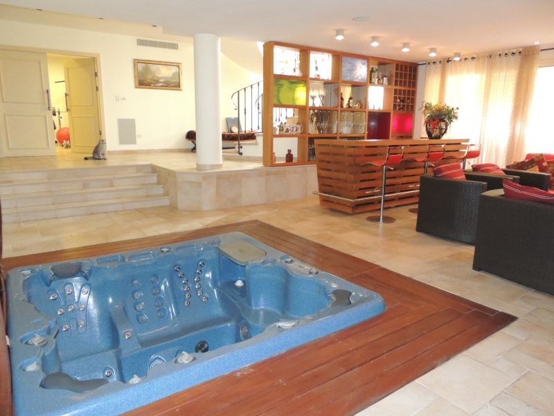 Cette villa spacieuse et super-luxueuse de 800 m² a plus de 10 chambres. Elle se trouve sur un terrain de 1000 m². Elle comprend 6 suites spacieuses, des chambres de bonne, Salle de sport, home cinéma, spa, piscine couverte avec une couverture réglable qui peut être enlevé pendant les journées chaudes, un sauna et un grand jacuzzi.
